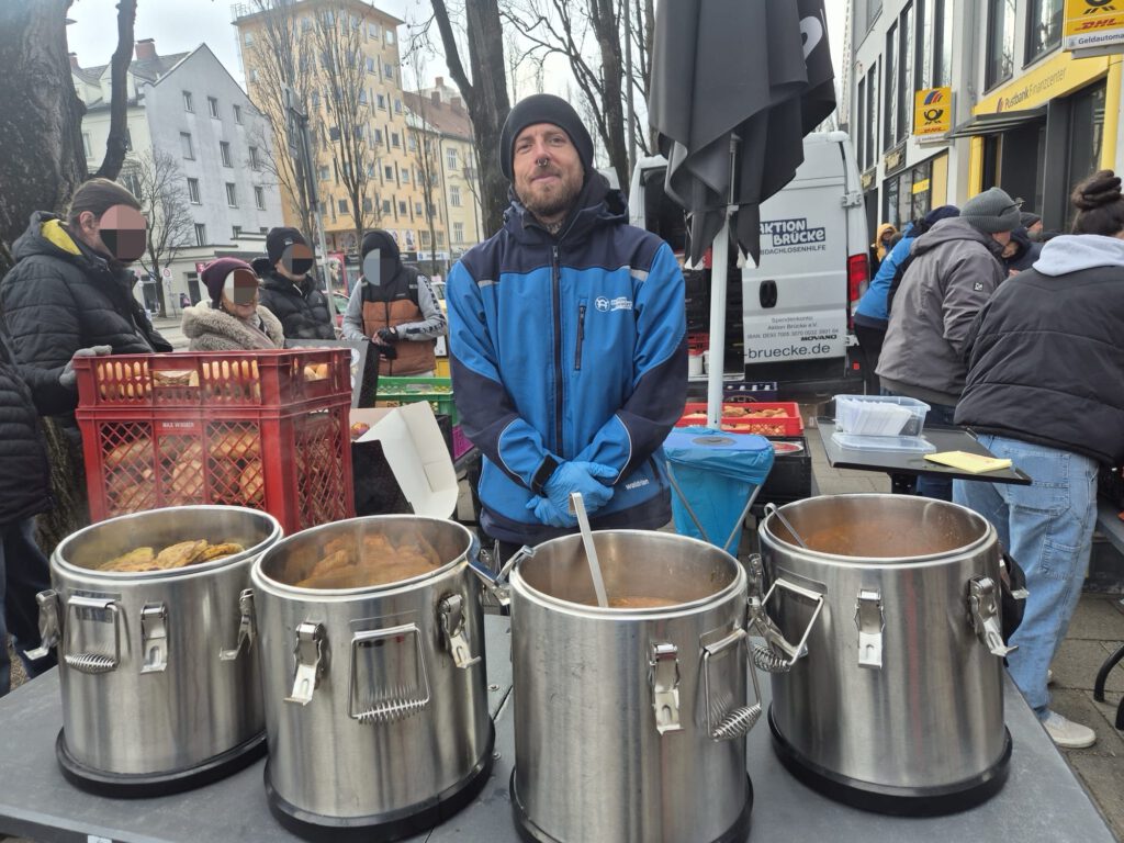 Tour 1 begann an der Münchner Freiheit zunächst ganz entspannt. Am Nussbaumpark war es dann deutlich voller mit vielen Gästen. Dennoch blieb alles ruhig und ohne besondere Vorkommnisse. Die Freude über Kleidung, Lebensmittel, warmes Essen sowie Kaffee und Kuchen war groß. Viele Gäste bedankten sich herzlich für unsere gemeinsame Arbeit und die verlässliche Unterstützung.
