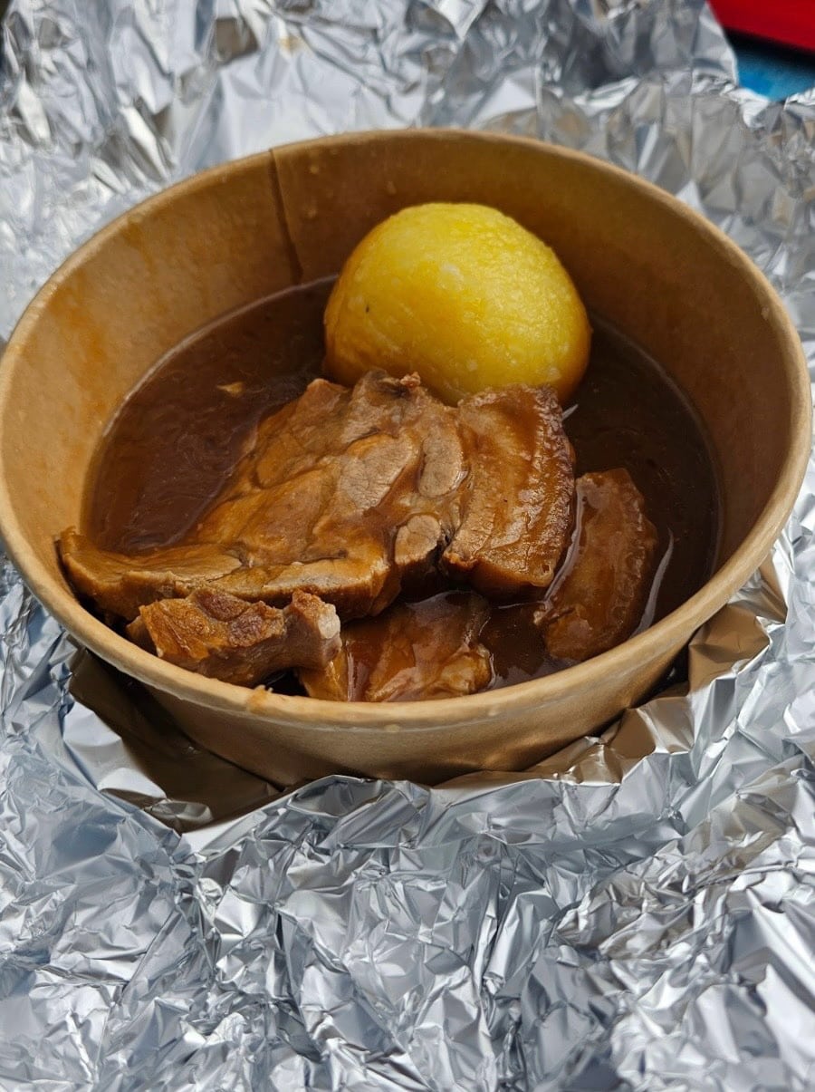 Ute aus Olching hatte erneut eine große Menge Schweinsbraten gespendet. Frisch zubereitet wurde dieser im Daxerhof in Olching und sorgfältig in Warmhaltebehältern verpackt. So kam alles heiß und in bester Qualität in München an. Michi, ein Freund von Dieter, brachte die Lieferung trotz Unfällen und Stau pünktlich nach Giesing. Dort war die Vorfreude bereits spürbar.
