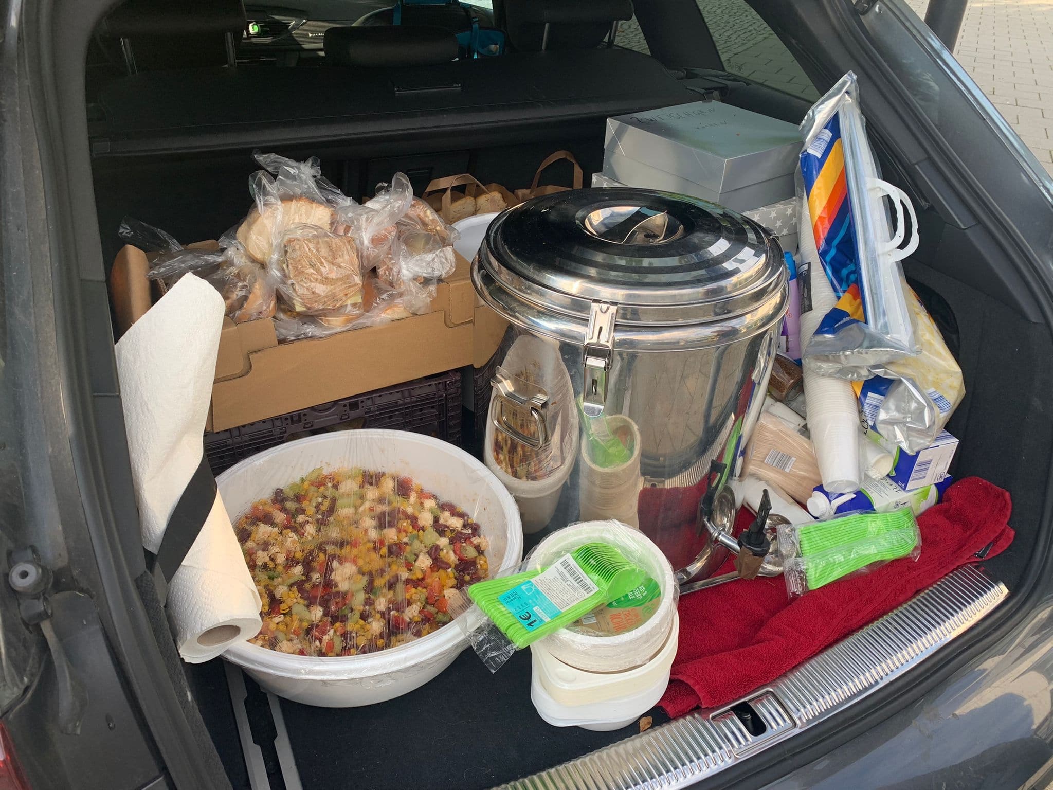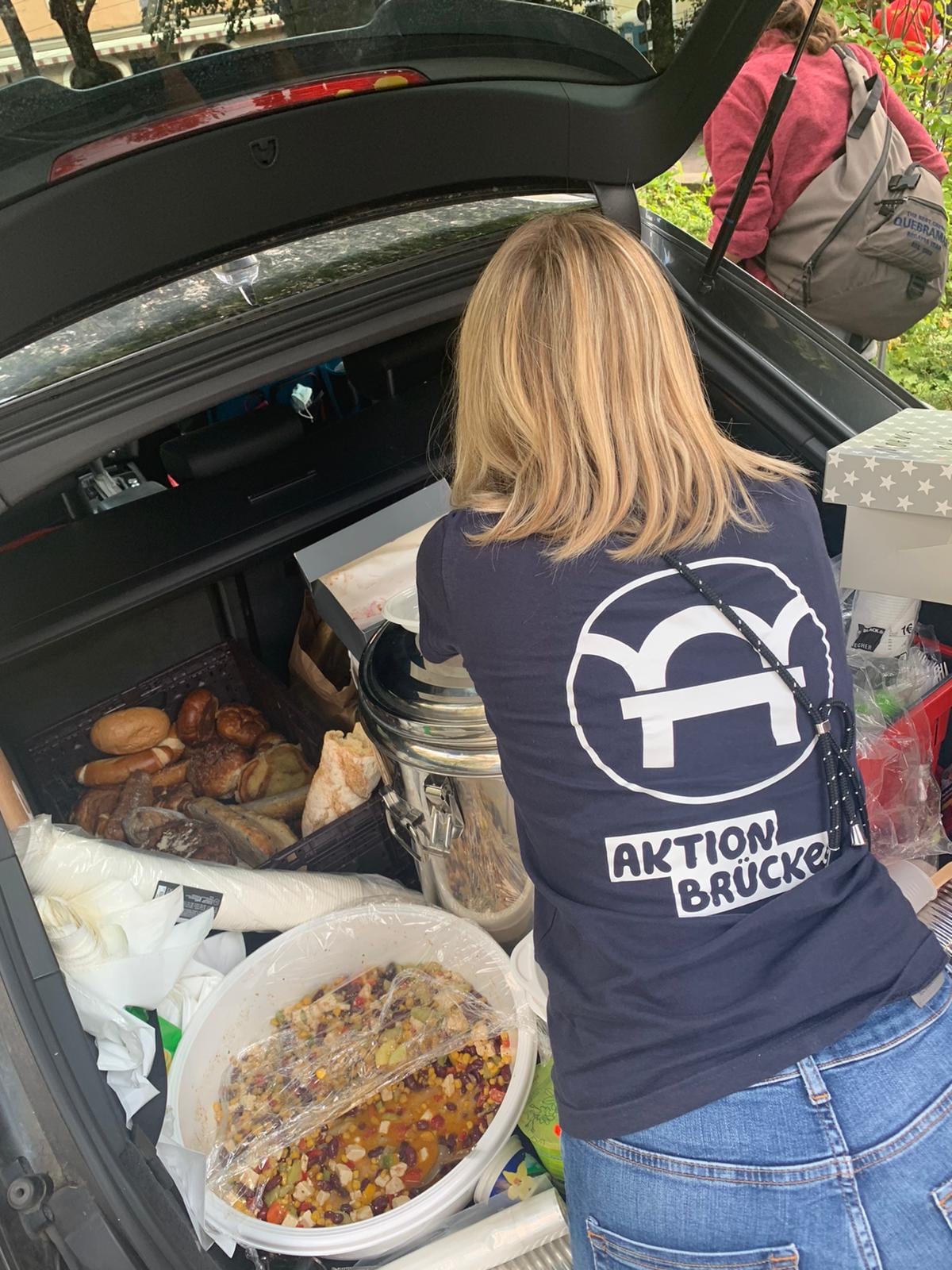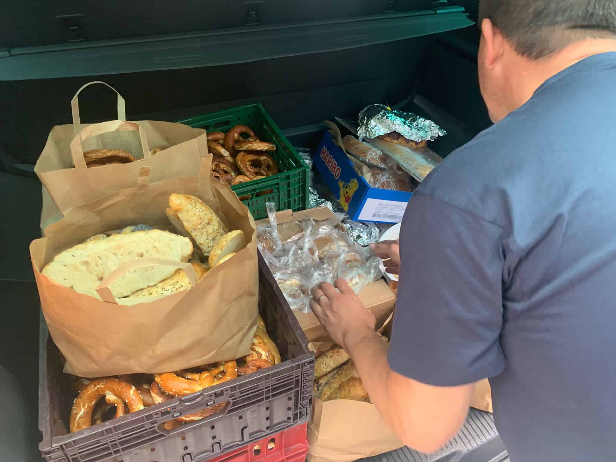 Unsere Nina, die sich sonst im Wechsel mit Andy und Anja um die Abholung der Lebensmittelspenden der Edeka Märkte kümmert, hat sich kurzer Hand dazu entschieden, noch zwei Salate zu machen und die Tour mit Vroni und Jorge zu ergänzen.