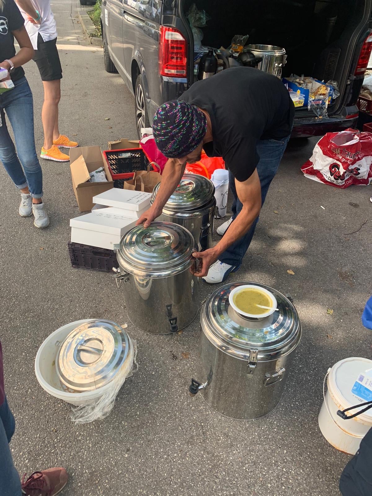Vroni und Jorge wurden an ihren üblichen Stationen schon sehnsüchtig erwartet, verteilten leckere Minestrone und vegane Zucchini-Suppe. Dazu reichten sie Semmeln, frisches Brot, verschiedene Kuchen, Salate und Obst. „Dass einige der „Stamm-Schützlinge“ wieder einmal eine warme Mahlzeit bekommen“, ist uns sehr wichtig. „Dafür sind wir jeden Sonntag auf der Straße, und die Dankbarkeit ist regelrecht spürbar“, sagt Vroni mit einem Strahlen in den Augen.