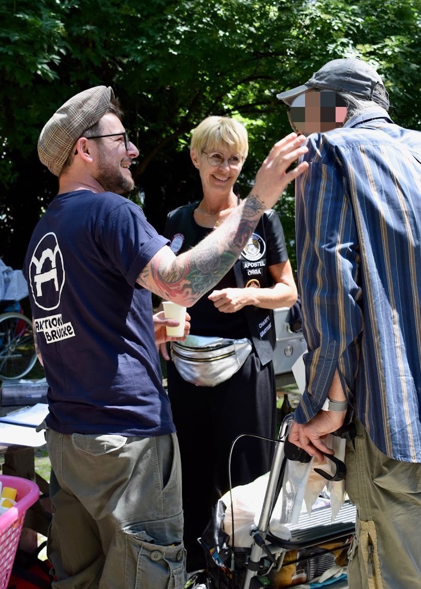 Während bei uns parallel die Essensausgabe stattfand, begann das Team bereits mit den ersten kostenlosen Haarschnitten. Bis 15:00 konnte sich jeder Bedürftige, Obdachlose oder Substituierte anmelden. Auch viele Rentner, nahmen das Angebot gerne in Anspruch. Einige erzählten uns, dass sie sich bereits seit mehreren Jahren keinen Friseurbesuch mehr leisten konnten. Bis 17:00 wurde fleißig geschnitten, gestylt und damit ein ganz neues Körpergefühl beschert.