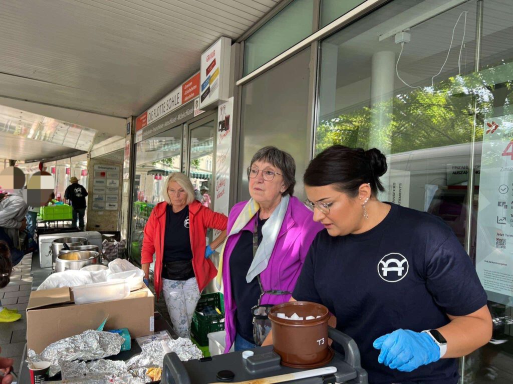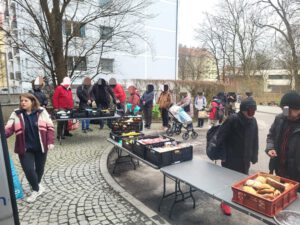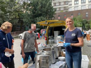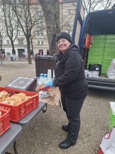 Glücklicherweise ist unser Team immer sehr flexibel und spontan, sodass unsere Ausgabe trotz der paar Stolpersteine, schlussendlich gut besetzt stattfinden konnte. Diese Ausgabe ist eine wunderbare Ergänzung zu unseren Versorgungstouren. Hier legen wir natürlich die größte Priorität auf die Versorgung der Menschen mit Lebensmitteln und warmen Mahlzeiten. Da deshalb der Platz in den Tourenfahrzeugen für genug Kleidung nicht ganz ausreicht, können unsere Tourenfahrer bei fehlenden Kleidungsstücken die Gäste zum Stand an der Universität schicken und wir bieten den Menschen damit sozusagen ein „rundum sorglos Paket“.