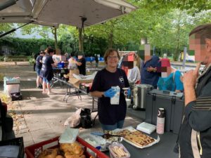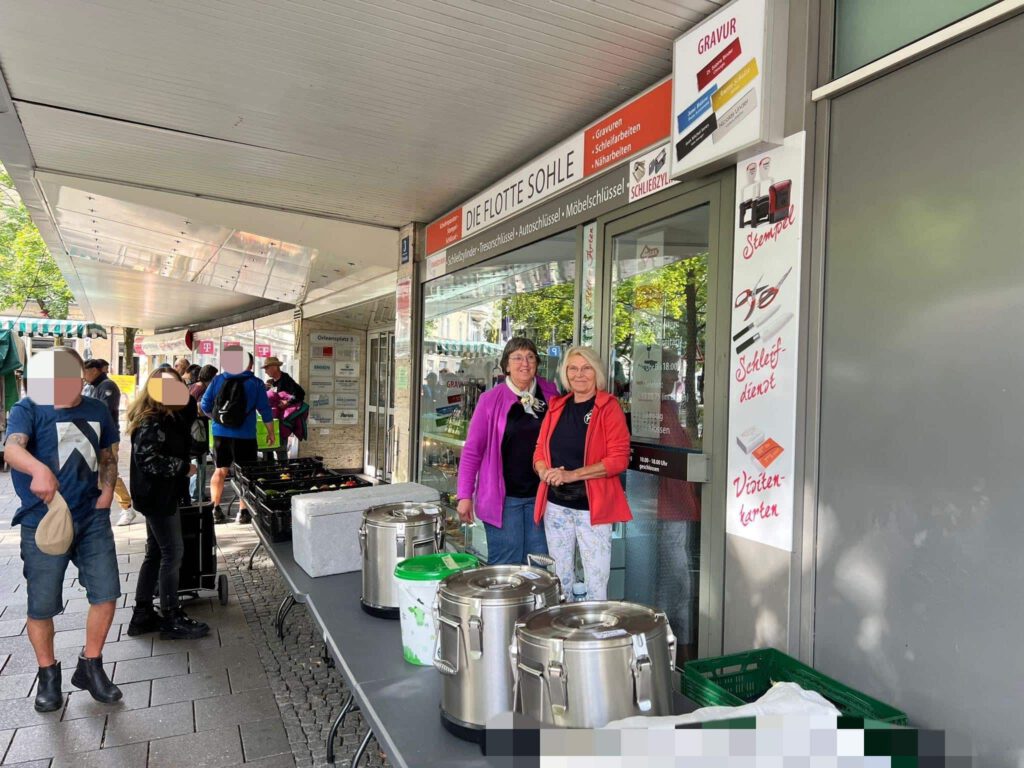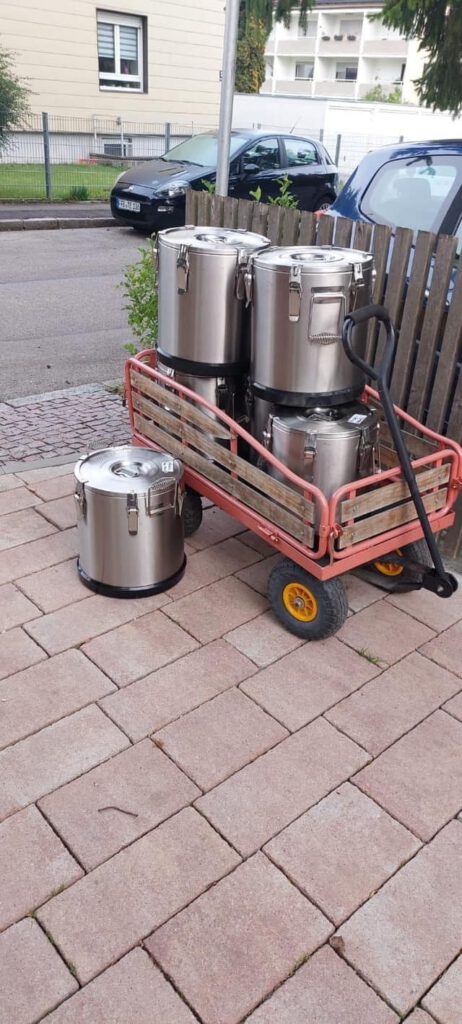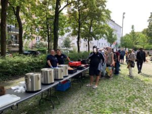 Als unsere Teams an ihrer jeweils ersten Station die Tische aufbauten und vor den geduldig Wartenden die Deckel der dampfenden Töpfe öffneten, lief vielen bereits das Wasser im Mund zusammen.