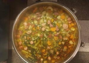 • Linseneintopf mit Würstchen