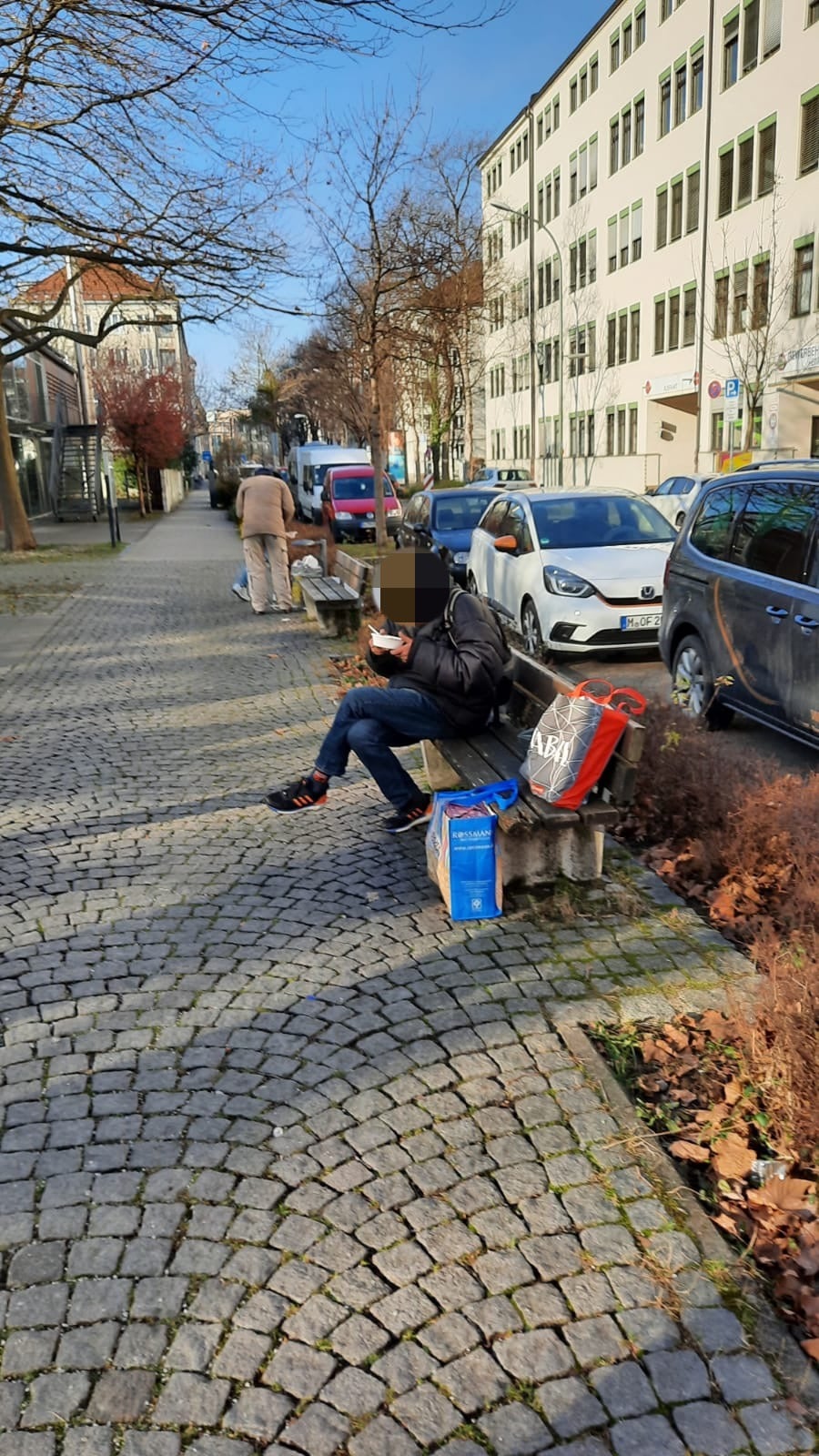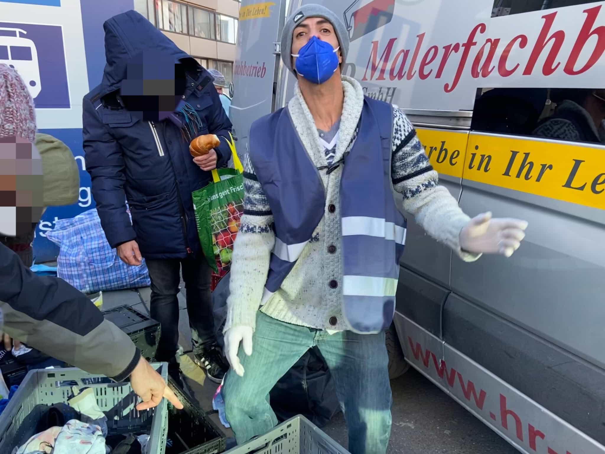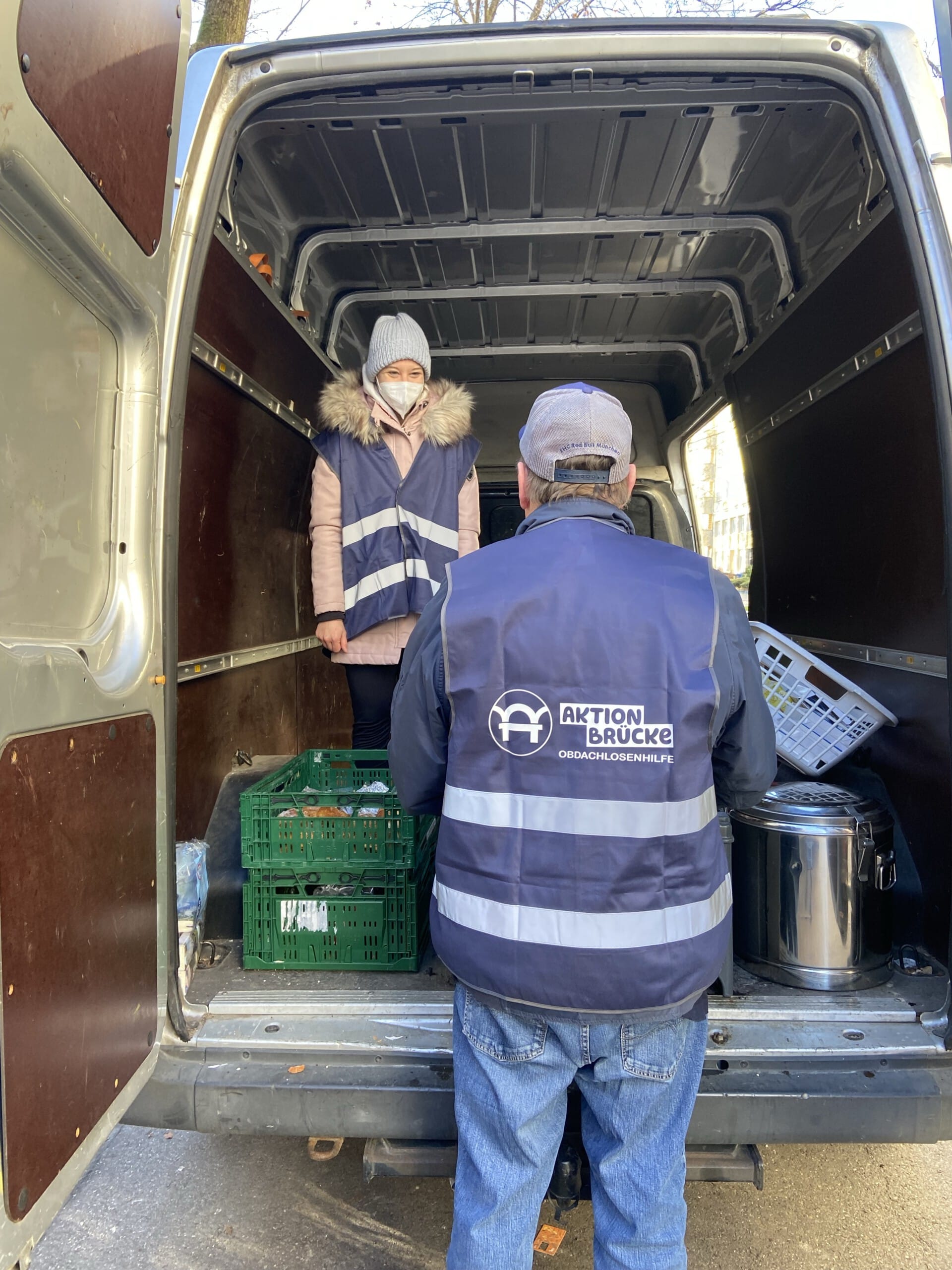 Bei unserer zweiten Station wurden wir, als wir bereits abfahrbereit waren, von einem Passanten darauf aufmerksam gemacht, dass hinter unserem Fahrzeug ein hungriger Mann, die Essensreste aus dem Mülleimer aß. Also packten wir nochmal Töpfe, Kuchen und Kaffee aus, was er hungrig und dankend annahm. Des Weiteren konnten wir ihn mit Handschuhen, einem Schlafsack und einer Isomatte ausstatten.