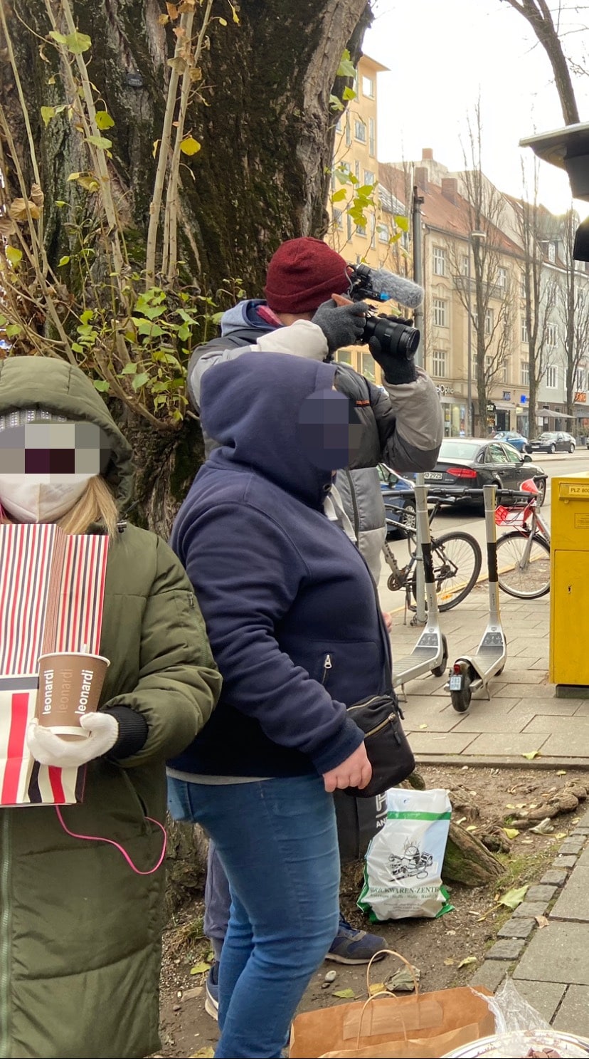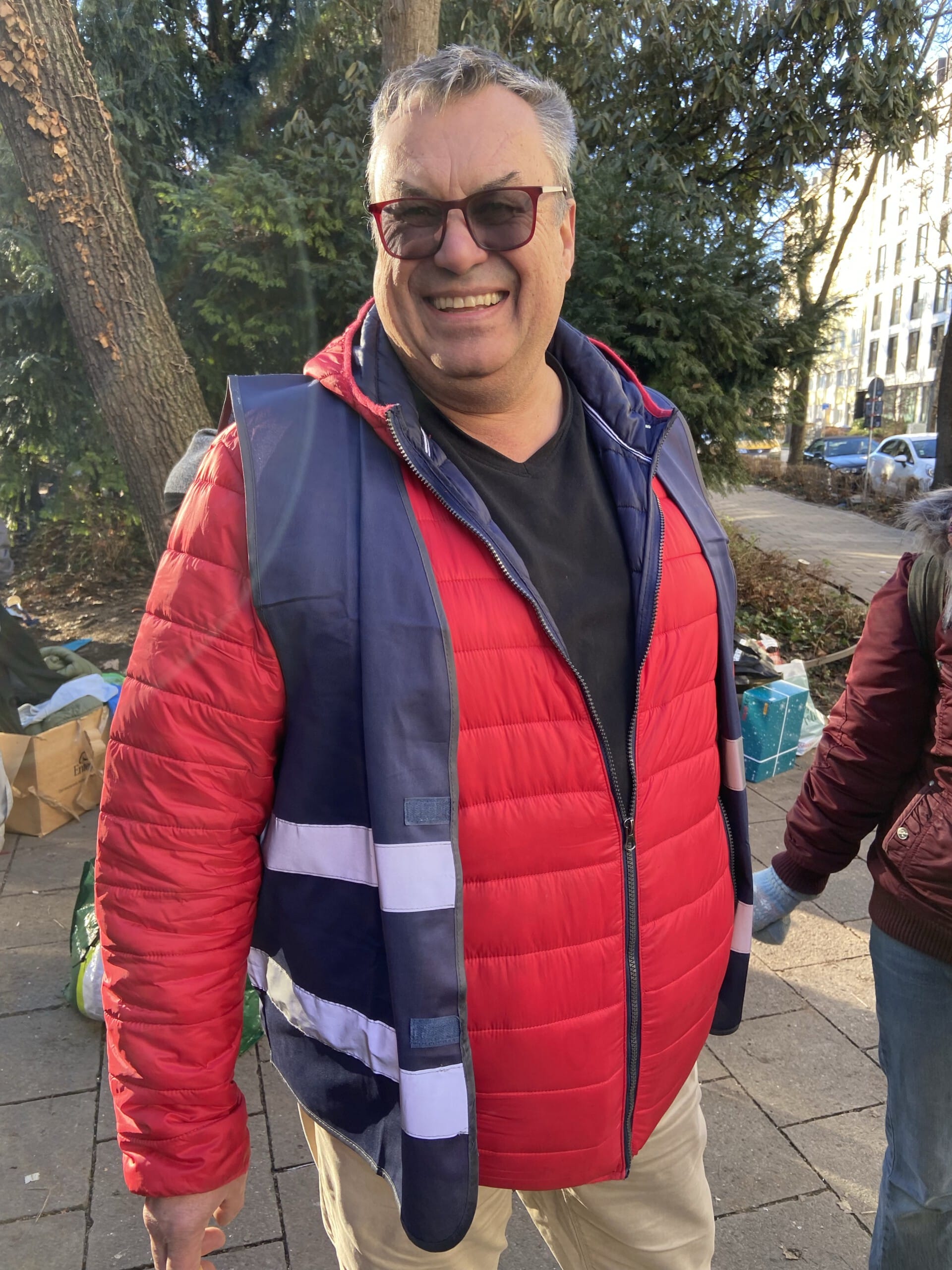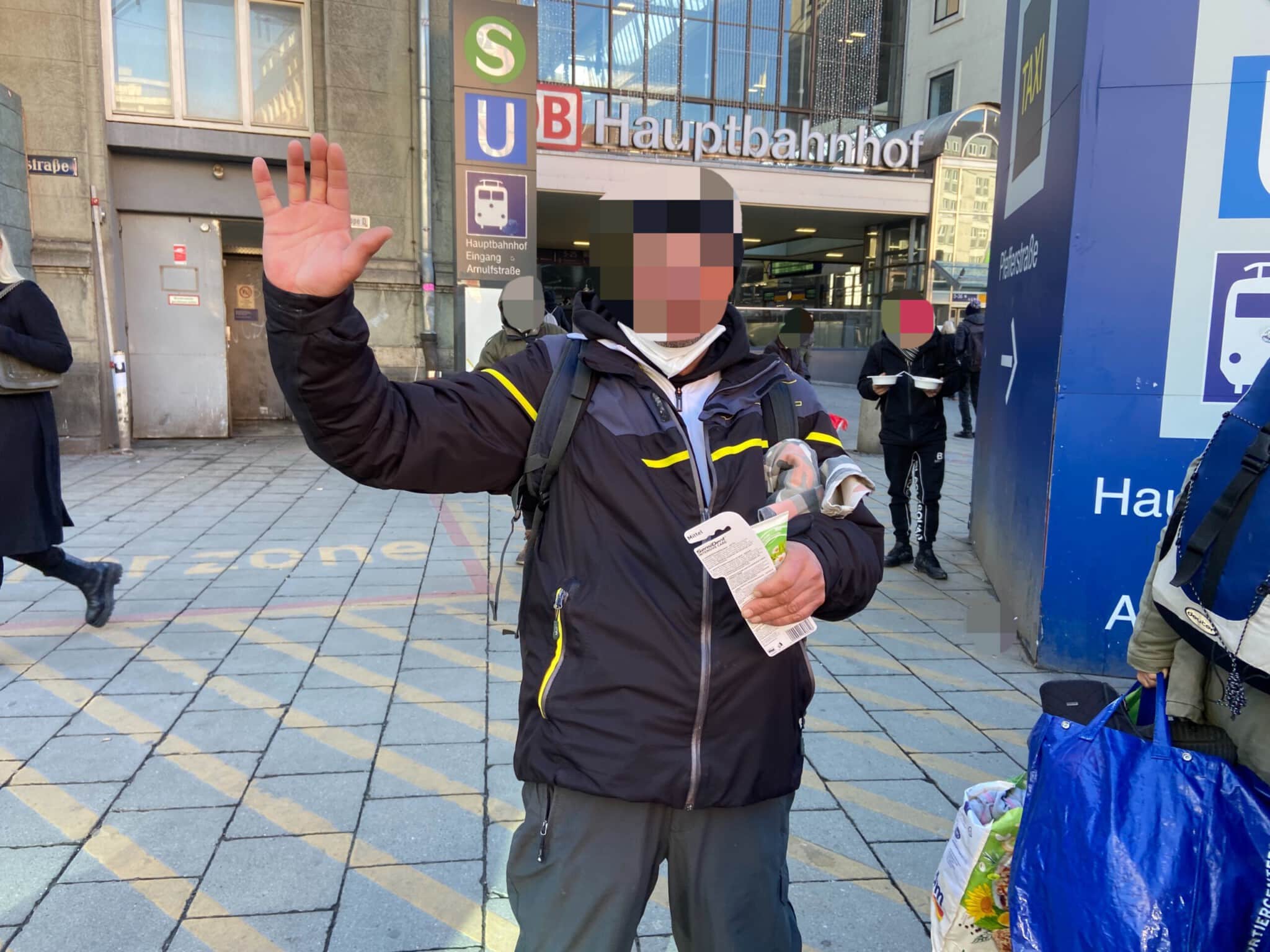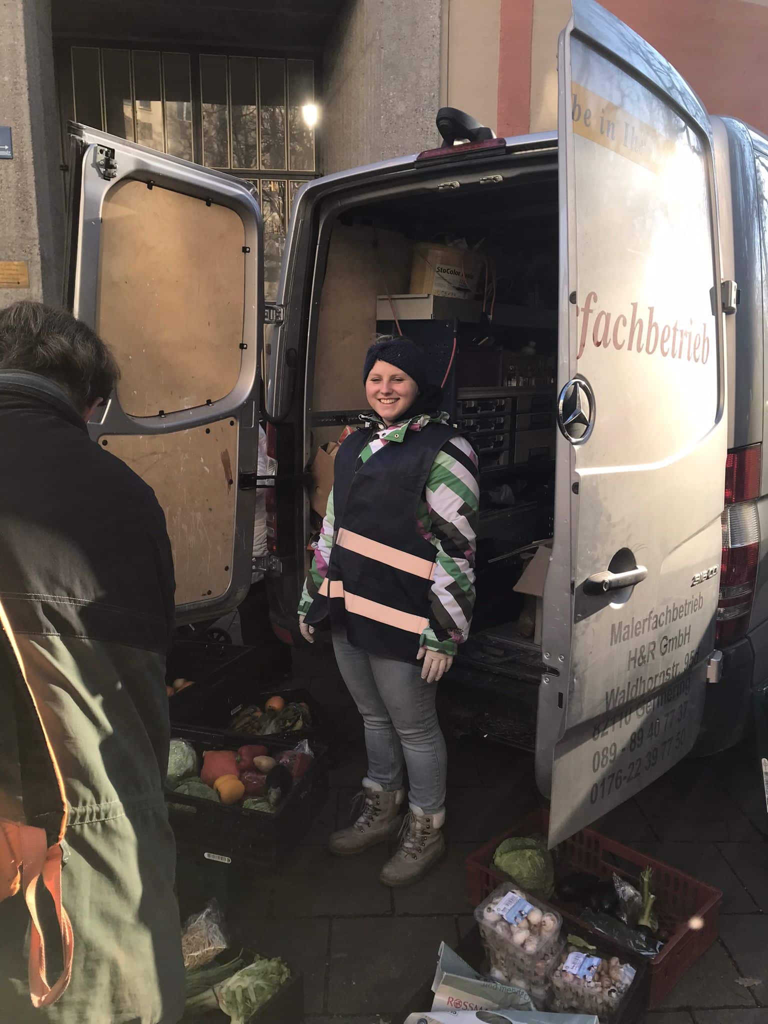 Bei unserer zweiten Station wurden wir, als wir bereits abfahrbereit waren, von einem Passanten darauf aufmerksam gemacht, dass hinter unserem Fahrzeug ein hungriger Mann, die Essensreste aus dem Mülleimer aß. Also packten wir nochmal Töpfe, Kuchen und Kaffee aus, was er hungrig und dankend annahm. Des Weiteren konnten wir ihn mit Handschuhen, einem Schlafsack und einer Isomatte ausstatten.