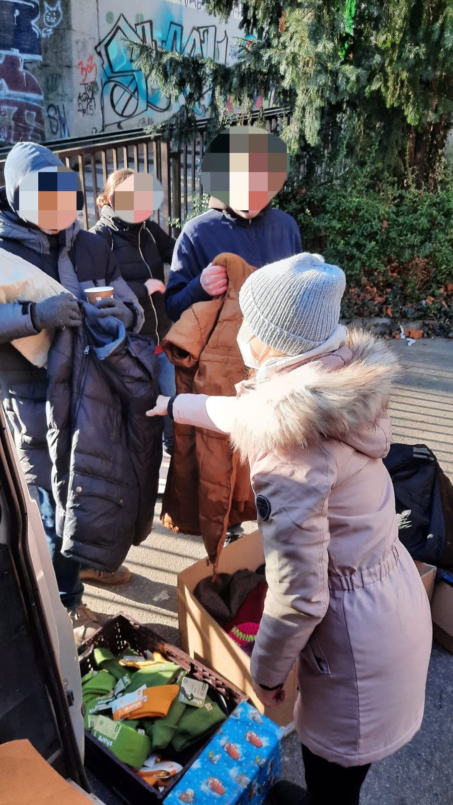 Umso schöner war es zu sehen wie viel Freude wir gestern in die rot gefrorenen Gesichter zaubern konnten. Unsere Weihnachtsgeschenke-Aktion war ein voller Erfolg. Viele verschiedene Emotionen kamen gestern zu Tage. Strahlende, lachende Gesichter, große Freude und auch Tränen aus Rührung und Dankbarkeit sowie unzählige, nicht enden wollende Umarmungen begleiten uns durch die gestrige Tour.