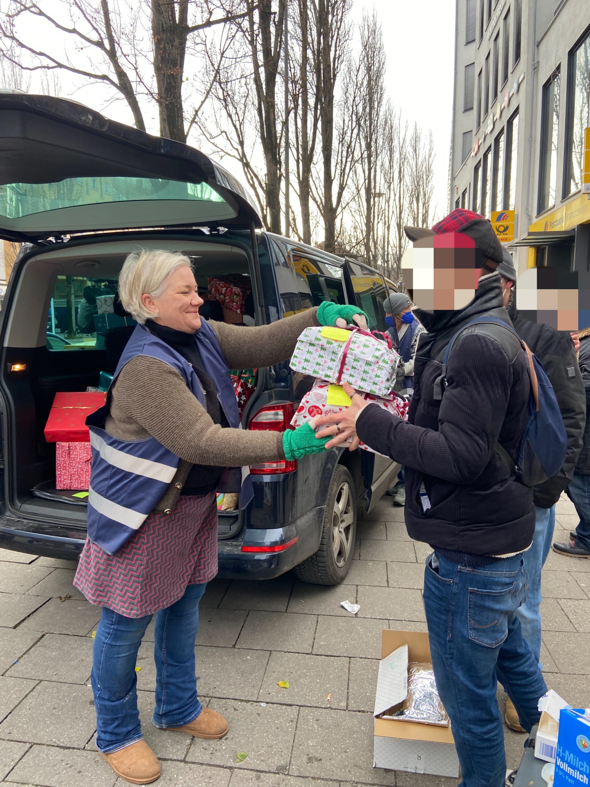 Als wir mit reichlich Verzögerung an unserer letzten Station ankamen traf das ganze Team aufeinander und verteilte gemeinsam noch unzählige Portionen warmes Essen und Lebensmittel, sowie die restlichen Geschenke, Punsch und Kaffee.