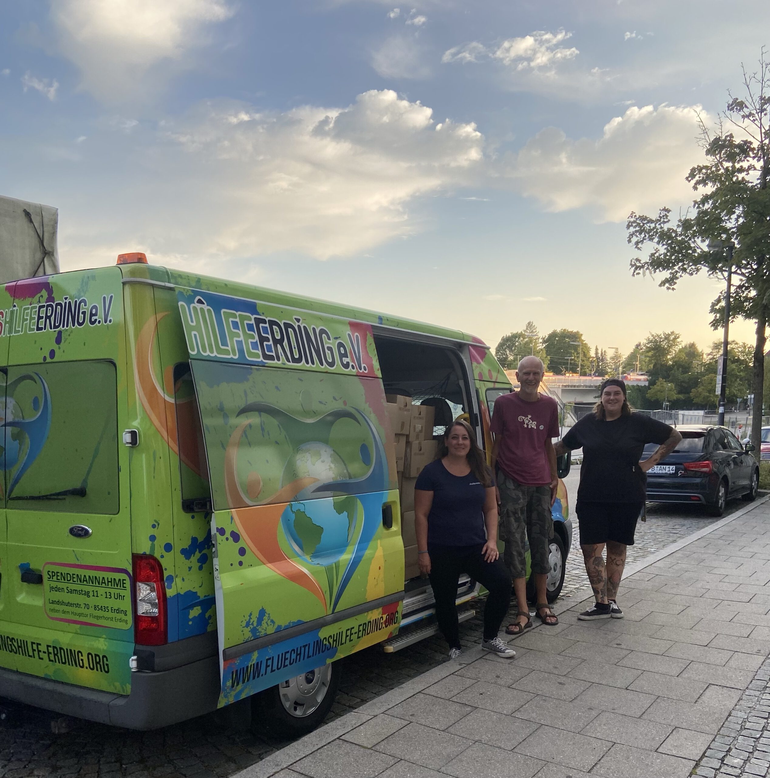 Gestern war die Flüchtlingshilfe Erding e.V. mit zwei ganz lieben Helfern bei uns zu Besuch und bekam von uns eine ganze Sprinterladung voll Artikeln, welche wir selbst nicht verwerten können.