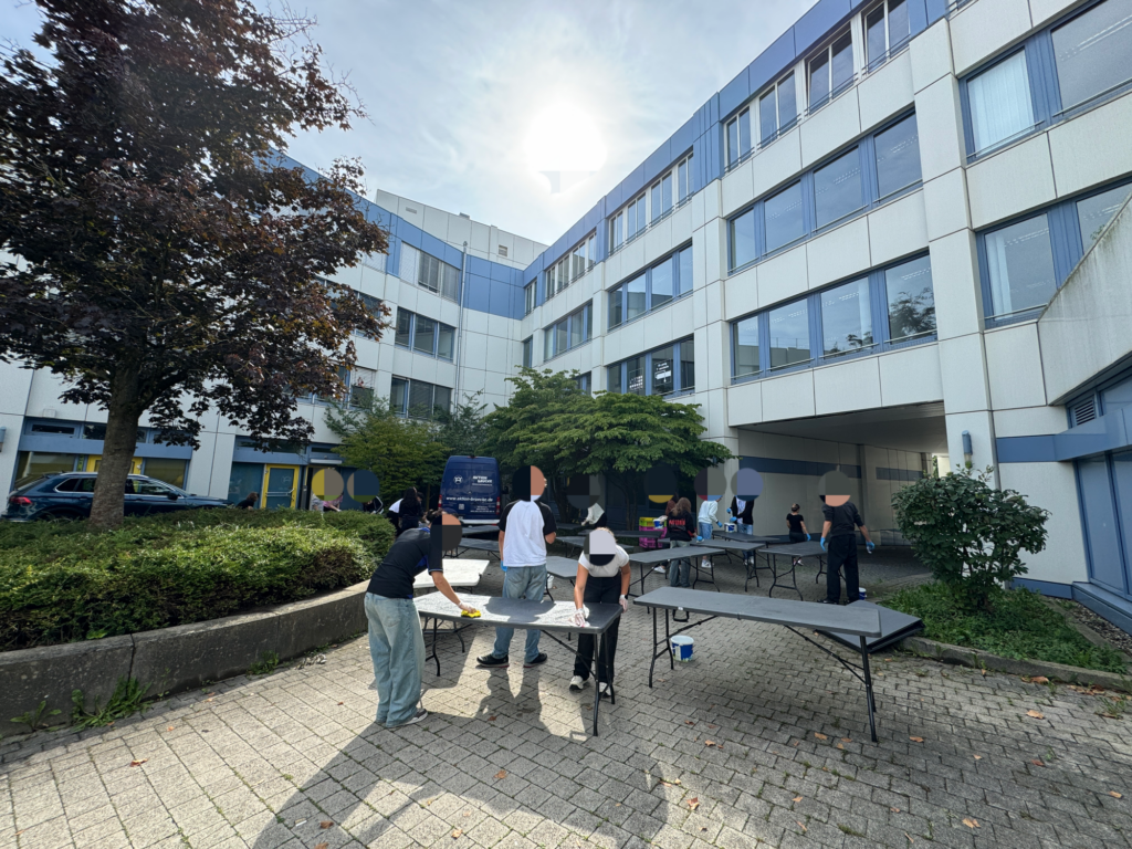 Gespannt durften die Schülerinnen und Schüler einem Vortrag unserer beiden Vorstände Anja und Vroni über Obdachlosigkeit und die Gefahren von Drogengebrauch lauschen.