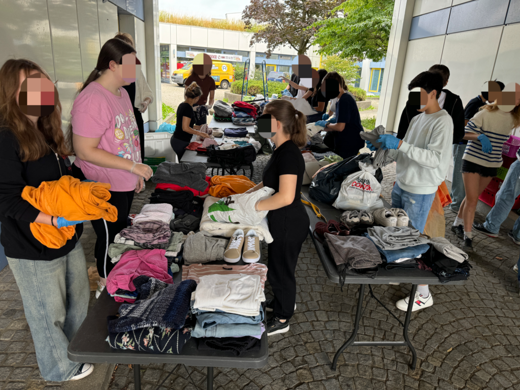 Im Anschluss half uns die Klasse mit ihren beiden Lehrerinnen noch bei alltäglichen Aufgaben wie das Sortieren von Kleiderspenden.