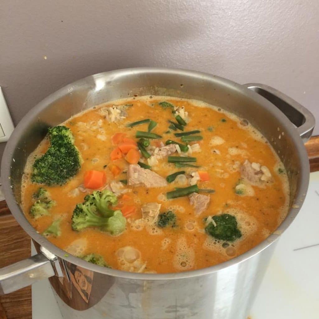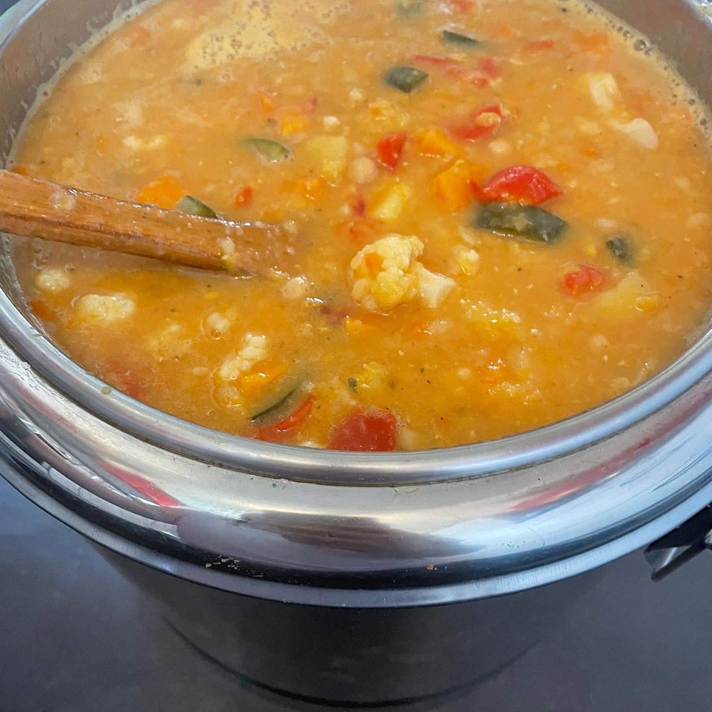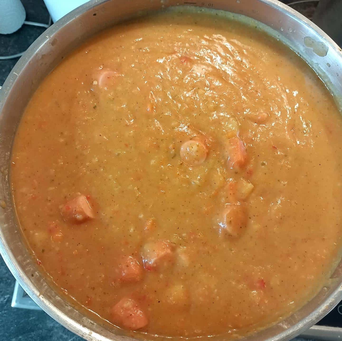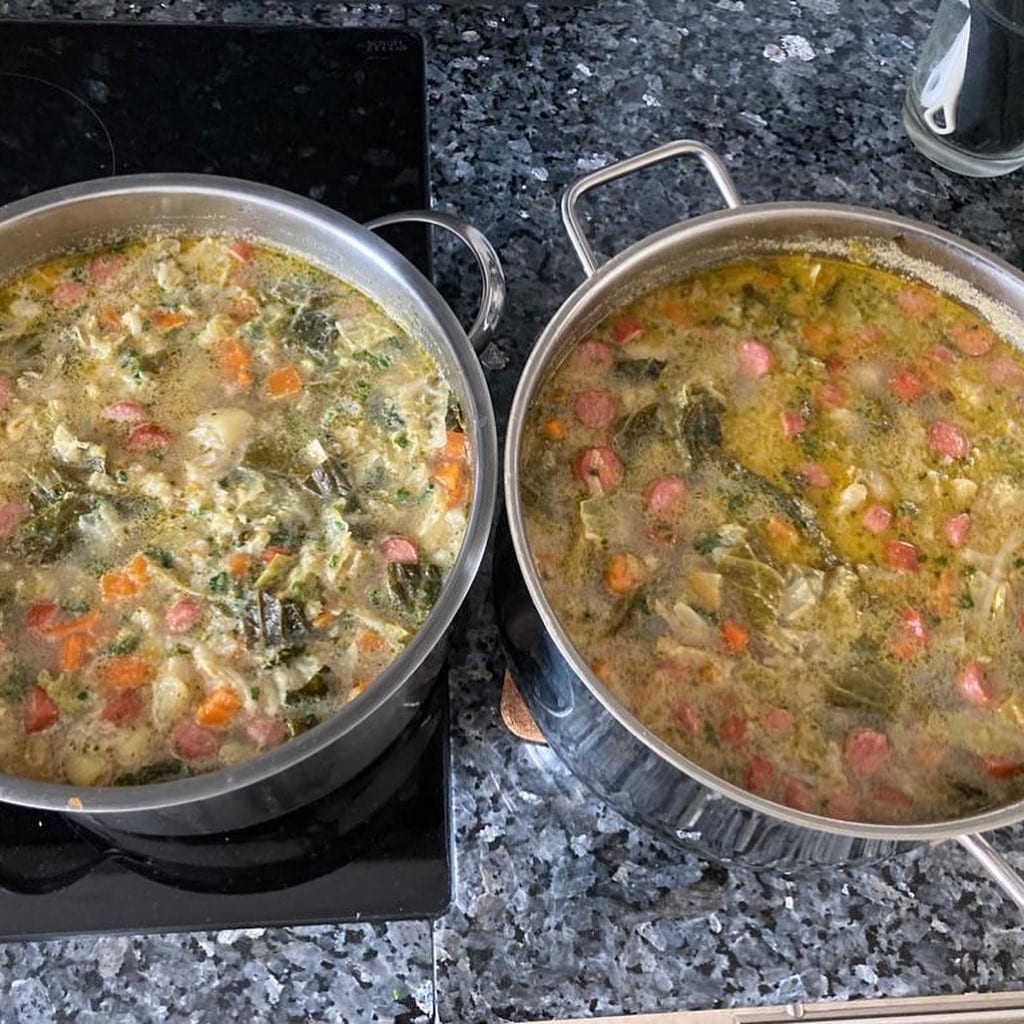 Heute gab es deftige Kartoffelsuppe von Johanna, ein Linsen Dal und Spaghetti mit Tomatensoße von Steffi, Wirsing-Kartoffel-Eintopf von Andrea, einem Gemüse Eintopf von Petra und ein sättigendes Reisgericht von Frances. Auch leckeren Kuchen von Anne durften wir verteilen sowie viele schmackhaft belegte Brote von Laura und Nicole.