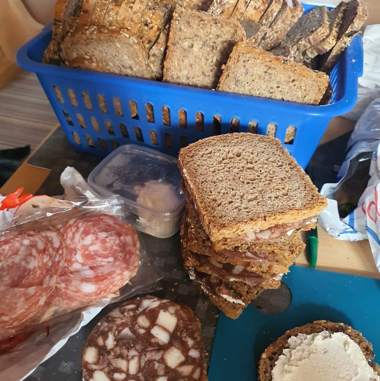 Unser Tourenteam Vroni, Jule, Jorge, Anja und Walter konnten gestern rund 70 Liter warmes Essen, an die auf uns wartenden Menschen verteilen. Walter packte fleißig Tüten mit Proviant für die nächsten Tage aus den uns gespendeten Lebensmitteln. Dank Walter konnten wir zusätzlich noch über 50 selbstgemachte Fleischpflanzerlsemmeln verteilen, welche wirklich gerne genommen wurden.