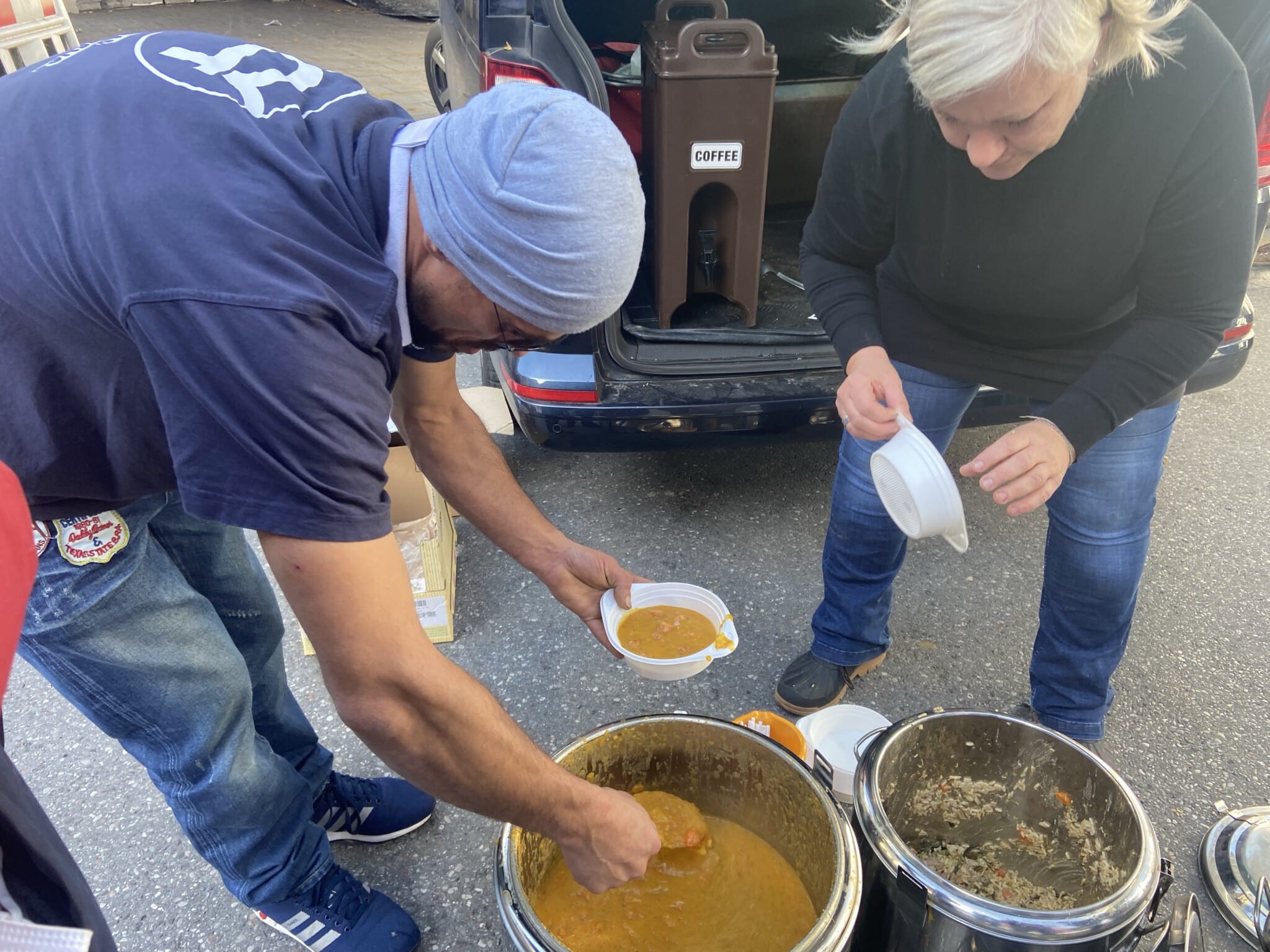 Auch unser Team Harald und Basti versorgten wieder etliche Menschen mit Kleidung, Lebensmitteln, heißem Kaffee und den wenigen Hygieneartikeln die wir noch im Lager hatten. Auch hier wurden weitere 35 Liter warmes Essen ausgegeben.