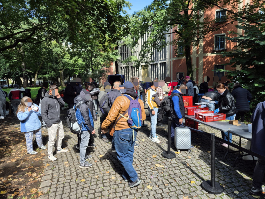 Jedes Wochenende versorgen wir etwas mehr als 1.000 Menschen mit mehreren hundert Litern selbst gekochten Speisen, Kaffee und Kuchen, Körperpflegemitteln, Kleidung und weiteren Hilfsmitteln für ein Leben auf der Straße oder in einer Unterkunft.